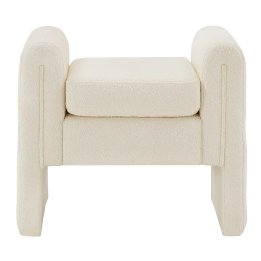 Amelia off White and Walnut Boucle Fabric Upholstered Accent Slipper Chair, Solid Wood