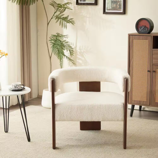 Eryndor Modern Boucle Upholstered Accent Arm Chair, Rubberwood, Beige plus Walnut