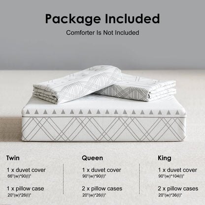 100% Cotton Fiber Premium quality material. We offer our customers an ultra-soft and breathable stripe duvet cover made of 100% cotton with excellent comfort and lightweight so that you don't have to worry about alternating hot and cold, and enjoy every quiet and comfortable sleep. Twin 2 Piece Set: 1 x Pillowcase 20" x 26", Duvet cover 66" x 90".Queen 3 Piece Set: 2 x Pillowcase 20" x 26", Duvet cover 90" x 90".King 3 Piece Set: 2 x Pillowcase 20" x 36", Duvet cover 104" x 90".Comforter is not included in the set. Bohemian Style Unique design makes boho duvet cover be alike delicate artwork, create a charming and fashionable appearance, bring you a brand-new bedroom feeling. Hidden Metal Zipper Exquisite hidden zipper, sturdy and durable, sufficient length allows you to easily put the comforter in and out. Solid Bow Ties Sturdy bow ties were set in four corners of the inside of the cotton duvet cover to help secure the comforter in the right place.