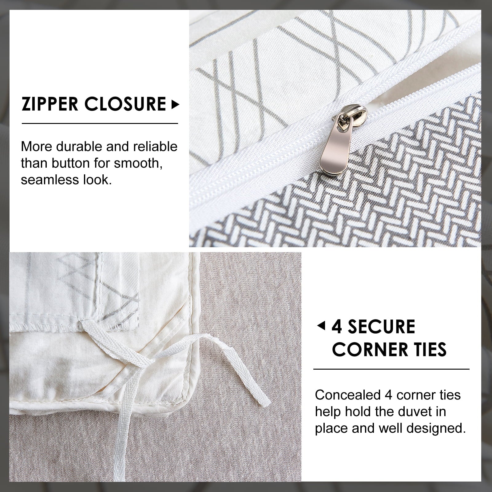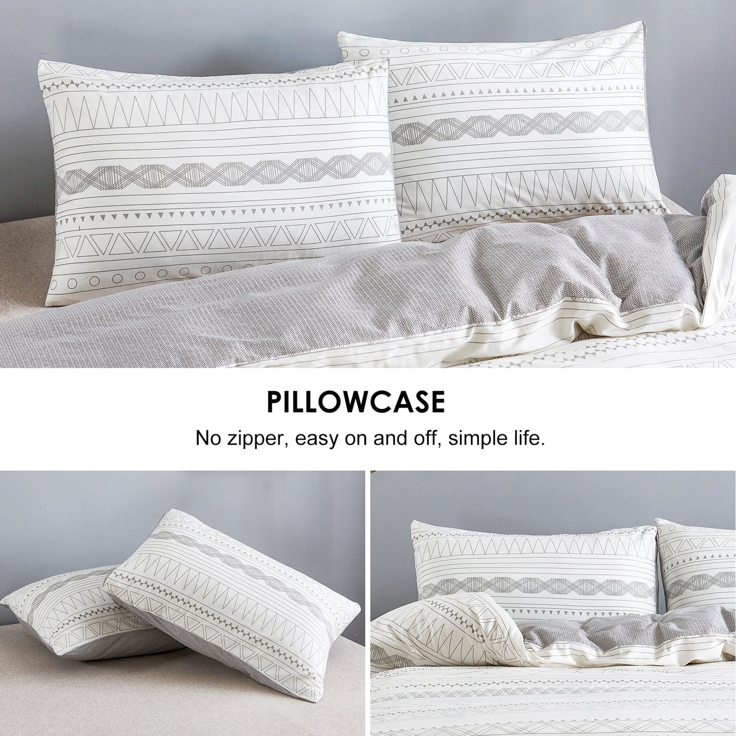- EASY CARE & DURABLE: Machine wash separately on cold water with similar colors. WARMDERN grey Aztec duvet cover, after special printing and dyeing process, has better fading proof performance than ordinary fabric, please do not bleach! Low-temperature roller or dry in shade, high-quality materials with wrinkle resistance, beautiful natural texture, do not iron! It's recommended that this white cotton duvet cover be washed before first use